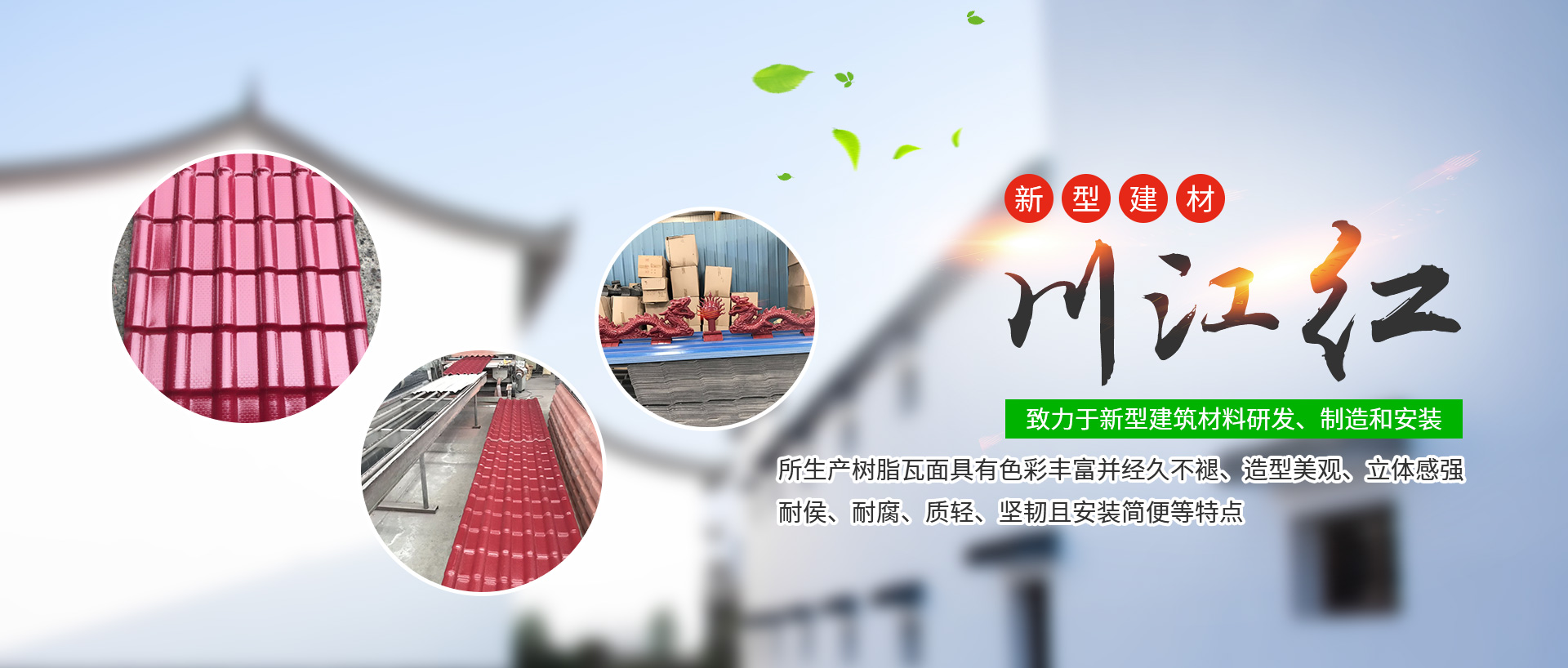 成都川江紅新型建材有限公司是2011-03-16成立,是西南領先合成樹脂瓦制造商,主要從事四川合成樹脂瓦、成都合成樹脂瓦的研發(fā)銷售。位于成都市西南航空工業(yè)港,是一家以科技為先導,致力于新型建筑材料研發(fā)、制造...